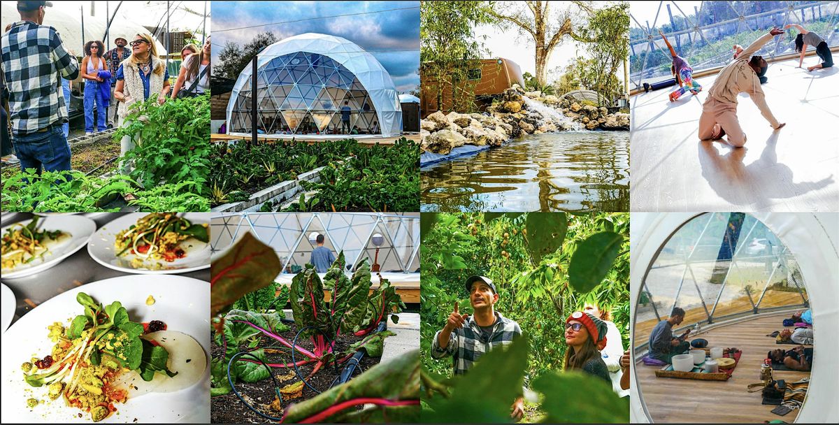 - Private geodome accommodation with twin beds, private dipping pool, kitchenette, and organic amenities