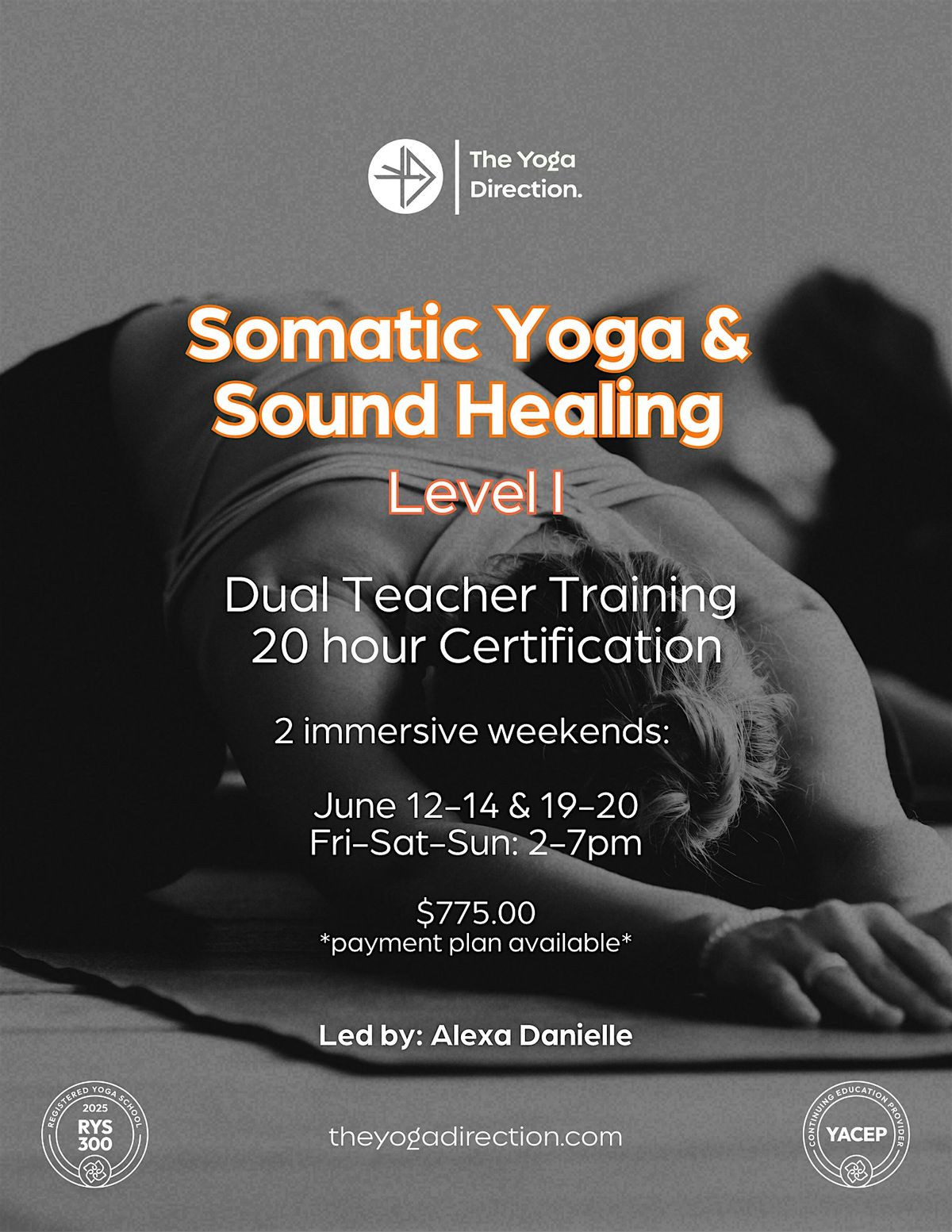 Somatic Yoga and Sound Level 1 is a 20-hour dual certification training in Somatic Yoga and Sound Healing, designed for those who want to work with the whole person: body, nervous system, and energy.