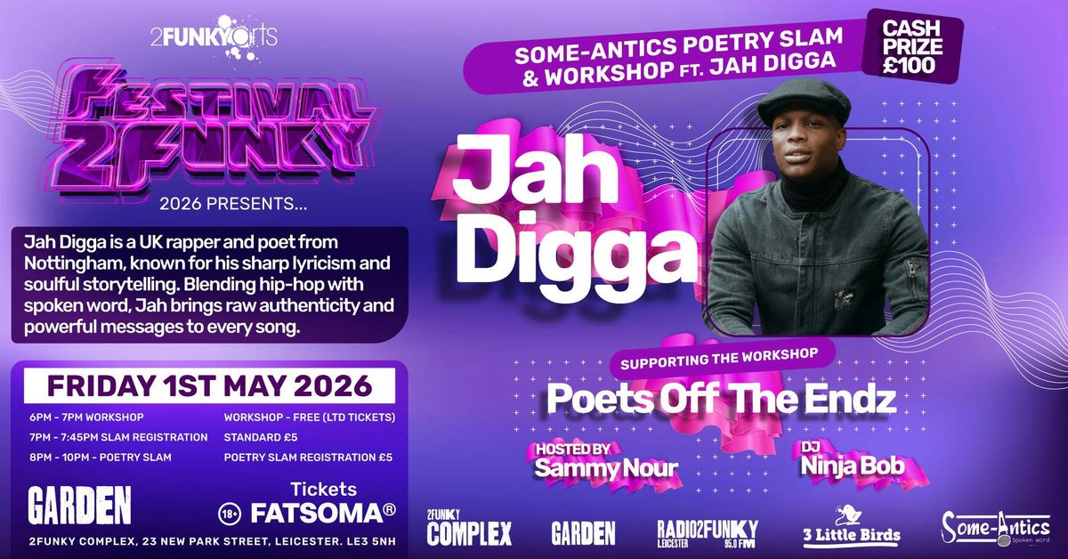 Festival2Funky 2026 Presents:Some Antics Slam & Workshop Ft. Jah DiggaVenue: 2Funky GardenDate: Friday 1st May 202618+