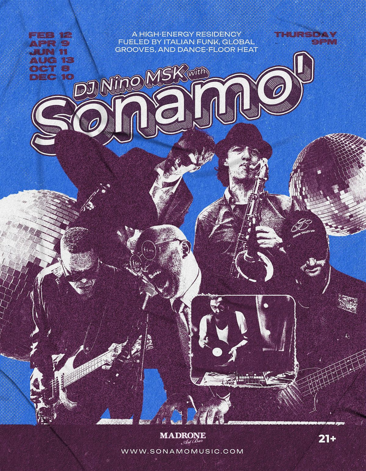 Every second Thursday, Sonamó brings high-energy Italian funk and global grooves to the stage, followed by an all-vinyl DJ set from DJ Nino MSK to keep the floor moving late into the night.