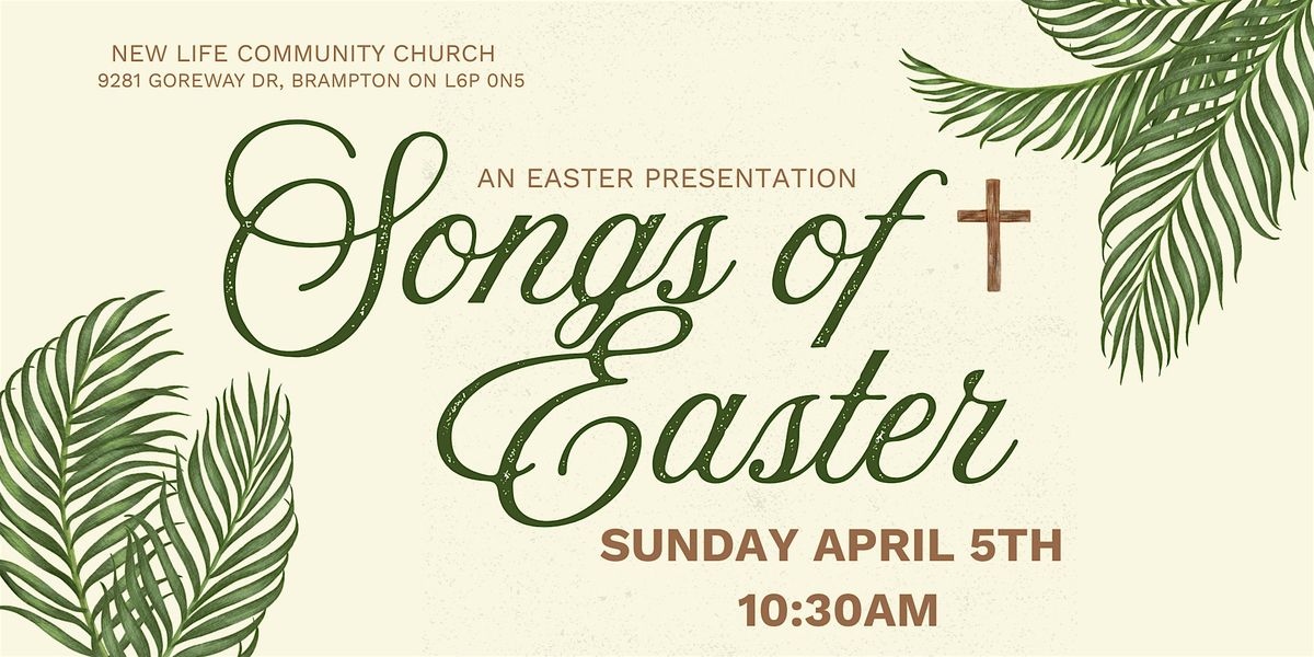 Join us for a powerful in-person celebration with Songs of Easter - a presentation full of familiar and uplifting hymns, simply and poignantly dramatized. Invite your family, friends, and neighbours to this special Easter Sunday service as we celebrate the resurrection of Jesus Christ.