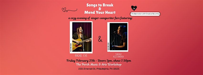Come join therapists by day/singer songwriters by night and for a bespoke evening of original music centered on all things heartbreak and healing. For fans of: Joni Mitchell, Regina Spektor, Brandi Carlile, Taylor Swift and Sarah Bareilles.