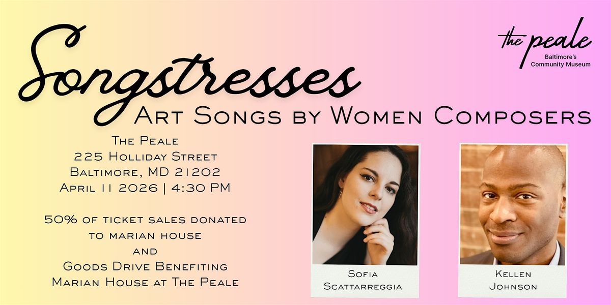 Join us April 11 at The Peale for Songstresses: Art Songs by Women Composers.