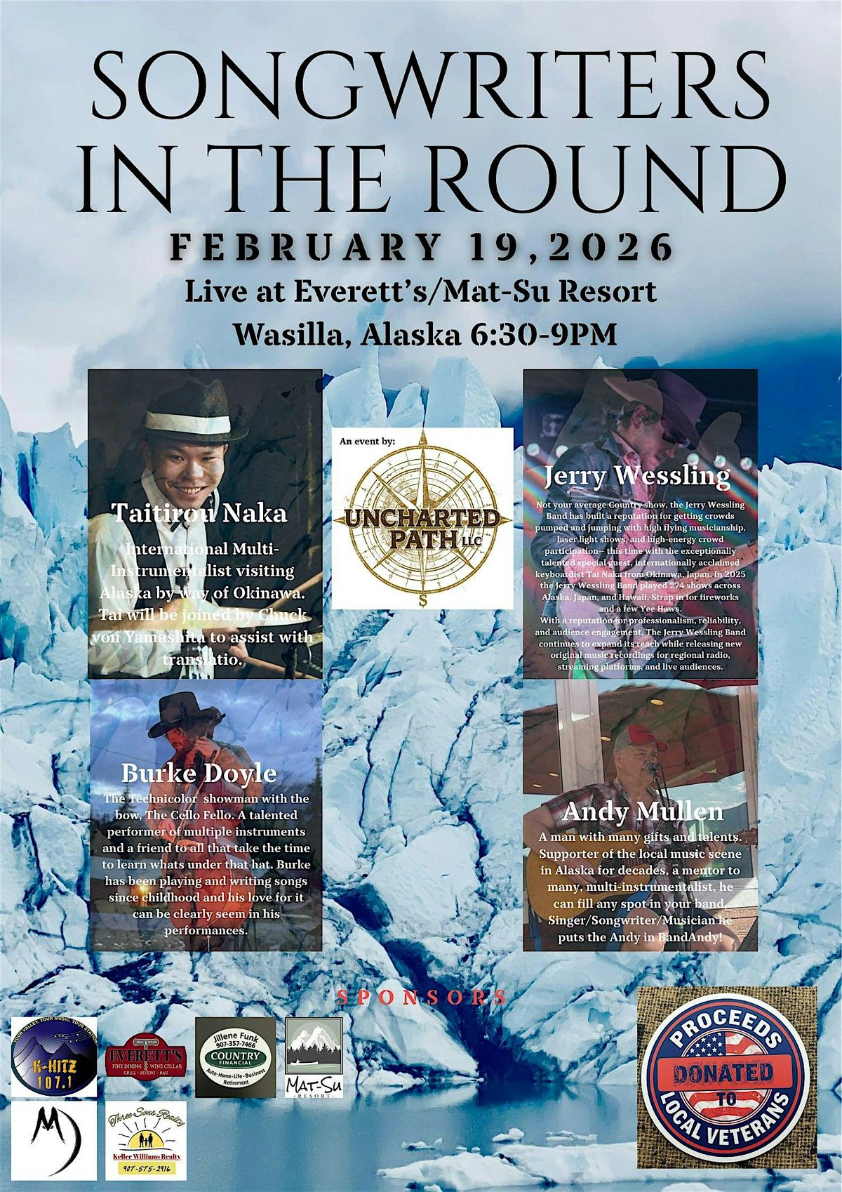 Songwriters in the Round: an intimate listening-room experience featuring original songs, honest stories, and the art of songwriting up clos