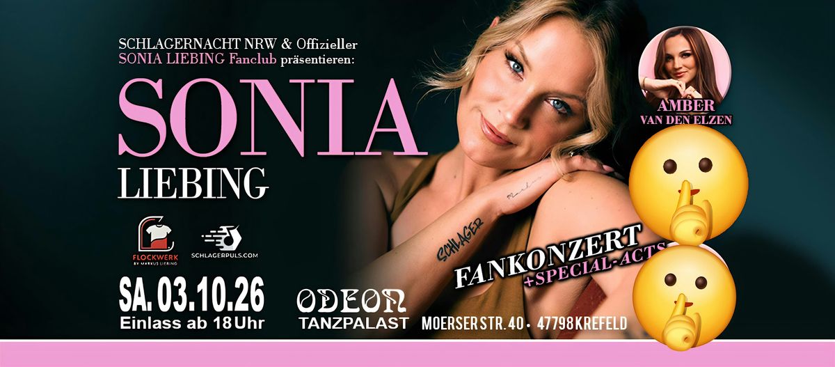 Freu dich auf Sonia Liebing live – und wieder mit Top-Künstlern, die für unvergessliche Stimmung sorgen. Ein Abend voller Hits, Emotionen und bester Laune!