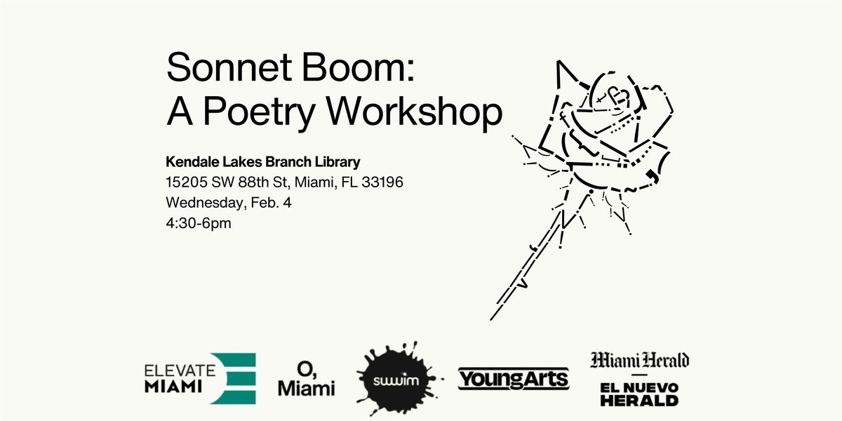 Join O, Miami, SWWIM, and Elevate Cities for a free, hands-on poetry workshop in celebration of , Miami’s citywide sonnet contest.
