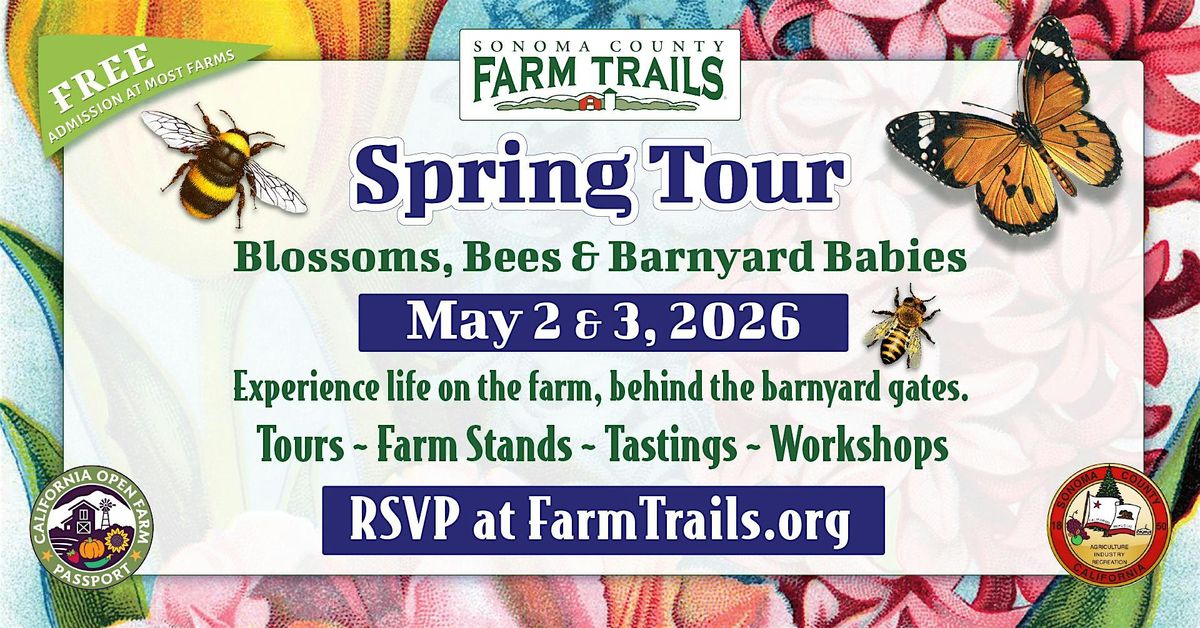Blossoms, bees, and barnyard babies: There’s nothing more delightful than springtime along the Sonoma County Farm Trails! Gather up the whole family for our annual Spring Tour on Saturday and Sunday, May 2 & 3, 2026.