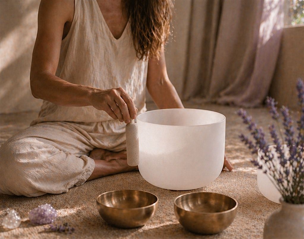 layered with live sound healing, a field of resonance unfolds. crystal singing bowls, chimes and subtle frequencies move through the nervous system, inviting release, balance and return.