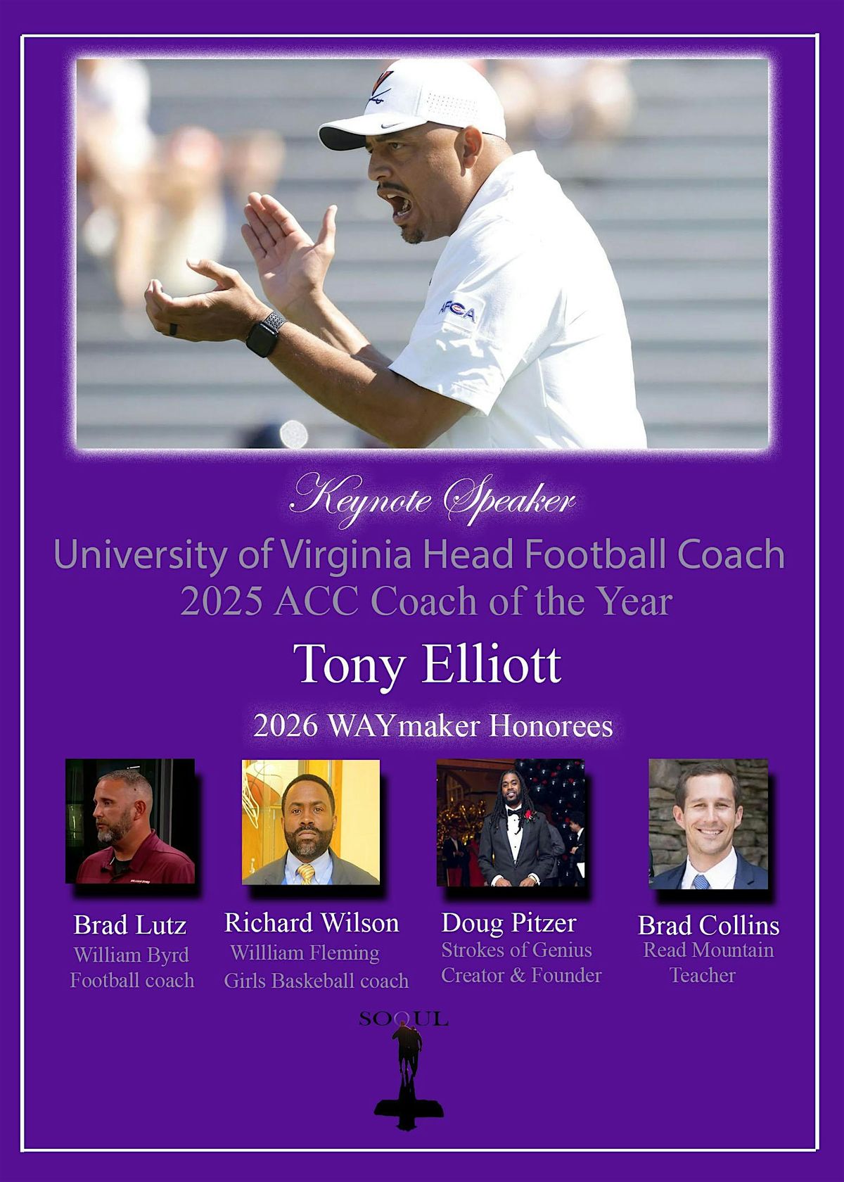SOOUL Foundation is a local non-profit that supports community leaders and youth in our area. Our WAYmakers Honors dinner is an annual fundraiser to help fund college trips for middle/high schools students, develop leadership programs, and create lifeskills/academic workshops for local schools. SOOUL is a 501c3, so all donations are tax deductible.