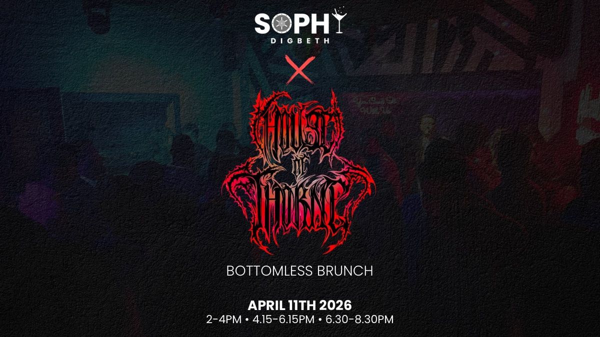 Sophy X House of Thorne Bottomless Brunch Everyone loves brunch, everyone loves drag… now put the two together! Over at Sophys Digbeth we’re hosting the tastiest brunch in digbeth! We’re talking pizza from Baked in Brick and UNLIMITED FRIES! Not to mention our fire array of drinks to choose from!