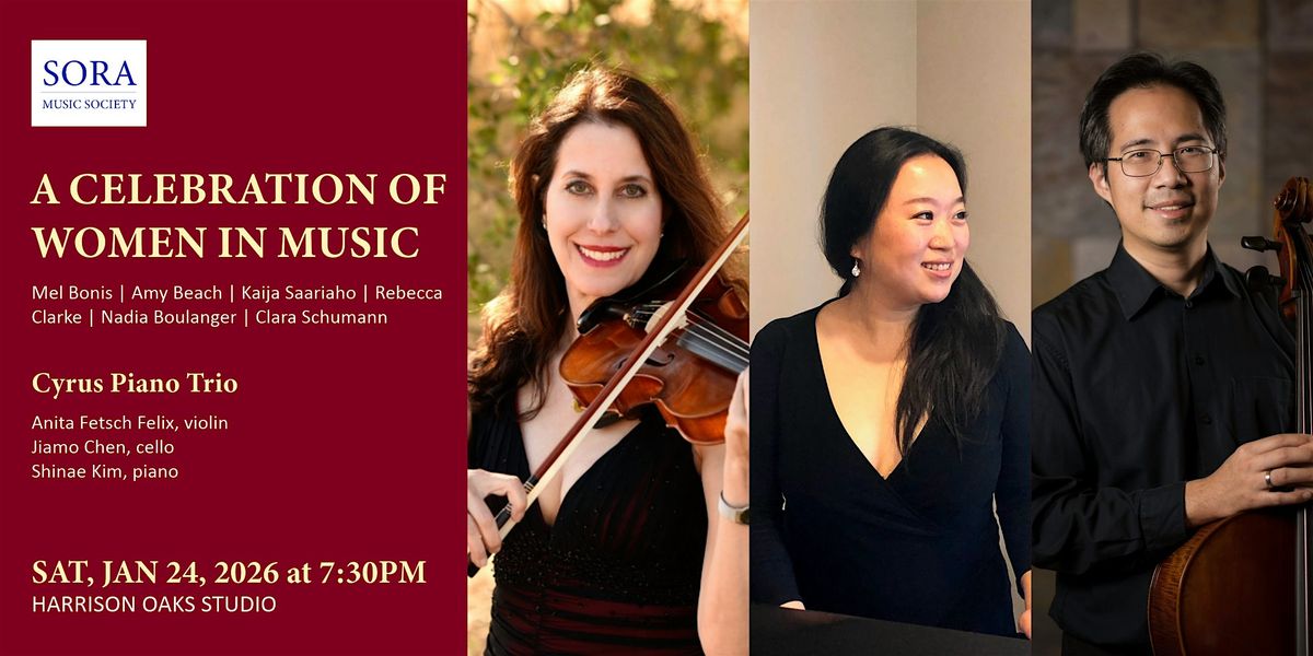 Experience an evening with the Cyrus Piano Trio, performing a captivating program dedicated to women composers. Enjoy works by Amy Beach, Rebecca Clarke, Nadia Boulanger, and Clara Schumann’s beloved Piano Trio in G minor.
