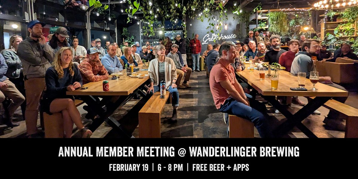 Join us for an evening of trail talk, community, and good times at Wanderlinger Brewing on February 19 from 6-8 PM! We’re bringing the stoke with free beer (first 75 folks age 21+ get one), appetizers, and exciting updates. We’ll take a look back at what we accomplished in 2025 with your support and give a sneak peek of what’s in store for 2026.