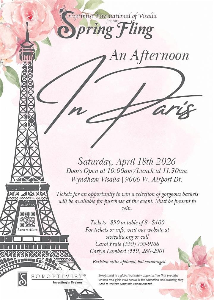Spring Fling is a luncheon and basket raffle to raise funds to help educate women and girls. Come join us for an Afternoon in Paris.About this Event