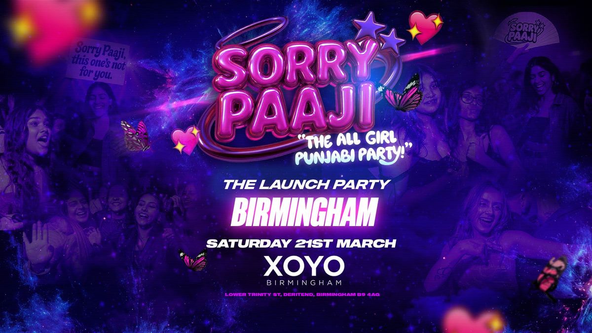 For the first time ever, Sorry Paaji lands in Birmingham with an exclusive all-girl Punjabi party, created as a safe, empowering space for Desi girls to come together, dance freely and own the night.