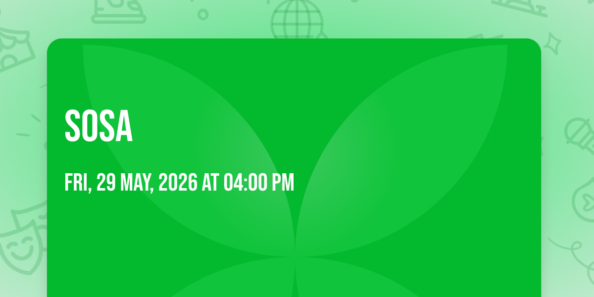 🎉 Welcome to Sosa, where dreams come alive and possibilities are endless! 🏛️ Join us at Mersea Restaurant in the heart of San Francisco, CA for an event that defies expectations. 📅 On May 29th, 2026 at 04:00 PM, be part of something truly extraordinary as we bring together innovation, entertainment, and pure magic. ✨ Every aspect has been carefully designed to ensure an unforgettable experience for all our guests. Whether you're seeking adventure, inspiration, or simply a break from the ordinary, this event promises to deliver beyond your wildest dreams. 🎊 Prepare for a journey into the extraordinary!http://maps.seatics.com/GeneralAdmissionEvent_VIP-GA_2025-02-25_1556_03312026_111125_SVGC_tn.png