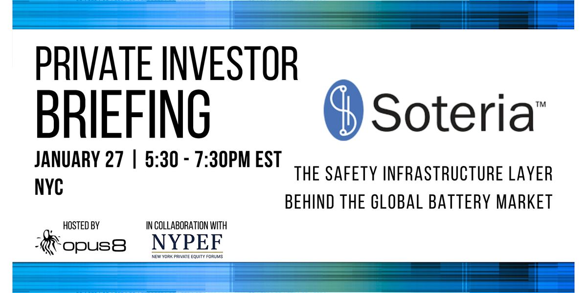 Opus8 is hosting a small, invitation-only private investor briefing featuring Soteria Battery Innovation Group, a company delivering inherently safer lithium-ion batteries through a capital-light, licensing-driven business model.