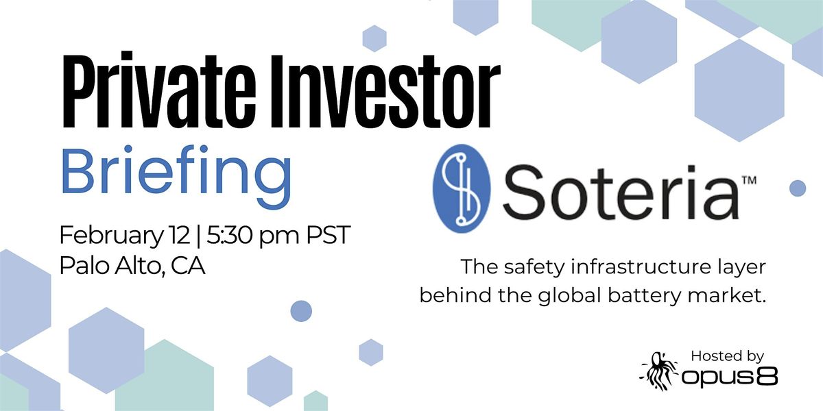 Opus8 is hosting a small, invitation-only private investor briefing featuring Soteria Battery Innovation Group, a company delivering inherently safer lithium-ion batteries through a capital-light, licensing-driven business model.