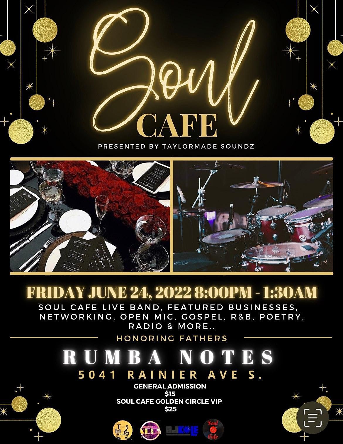There is also our Soul Cafe Golden Circle VIP admission $25.00 (which includes: Soul Cafe T-shirt and a Soul Cafe Swag bag with many gifts).