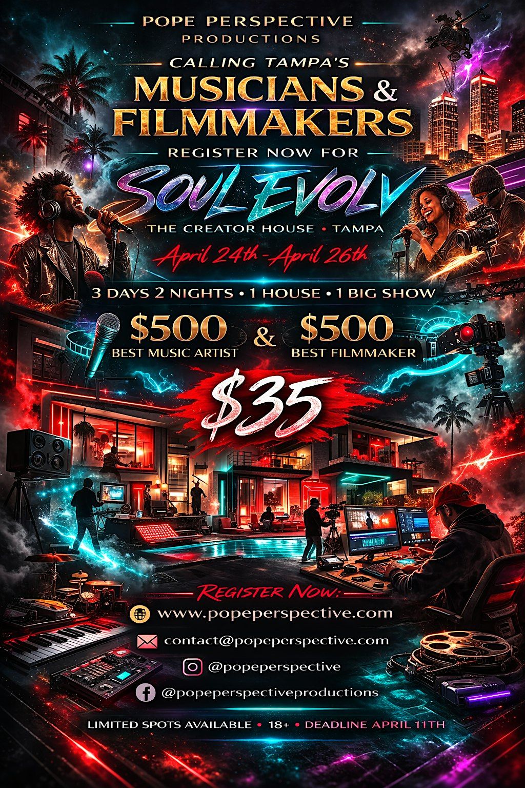 #soulevolvtalentshow #popeperspectiveproductions #soulevolvcreatorhouse #soulevolv #GasparillaMusicFest #TampaMusic #TampaCreativeScene #TampaBayThingsToDo #USFBulls #SoulEvolv #CreatorHouse #LevelUpYourSkills #TampaEvents #GasparillaMuscians #Seminole #Pinellas #St. Petersburg #Tampa #TampaBay #ThingsToDo #Music #Film #Competition #Win #Money