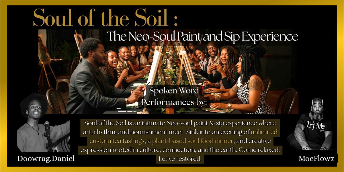 Soul of the Soil is an intimate neo-soul paint & sip experience centered on art, sound, and nourishment. Set in a warm, candle-lit space, this evening invites guests to slow down, create, and connect.