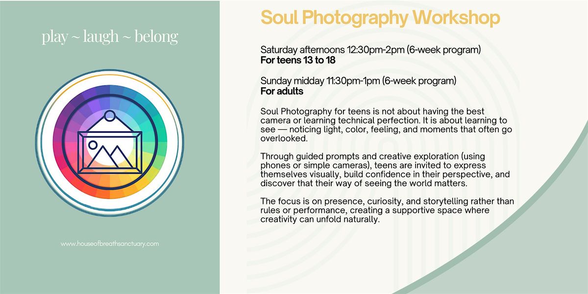 Soul Photography invites participants to explore photography as a practice of presence, perception, and self-expression.