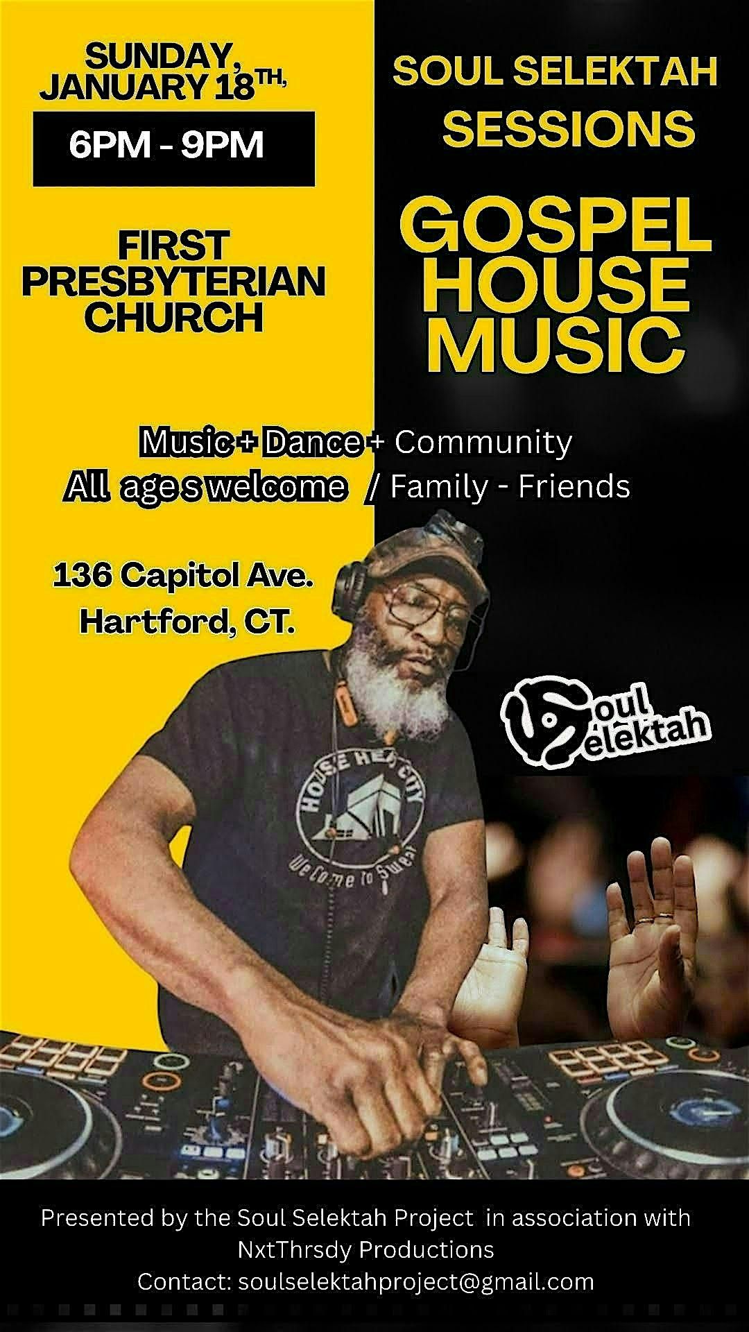 This MLK Weekend, join DJ Soul Selektah at First Presbyterian Hartford, Sun Jan 18, 6–9 PM for gospel-inspired house, joy & community.