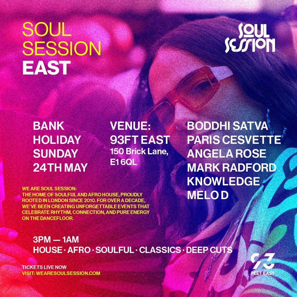 Join Soul Session Day Party at 93 Feet East - playing the best in house music, high-energy, and dancing to sunset!Music Genres : House