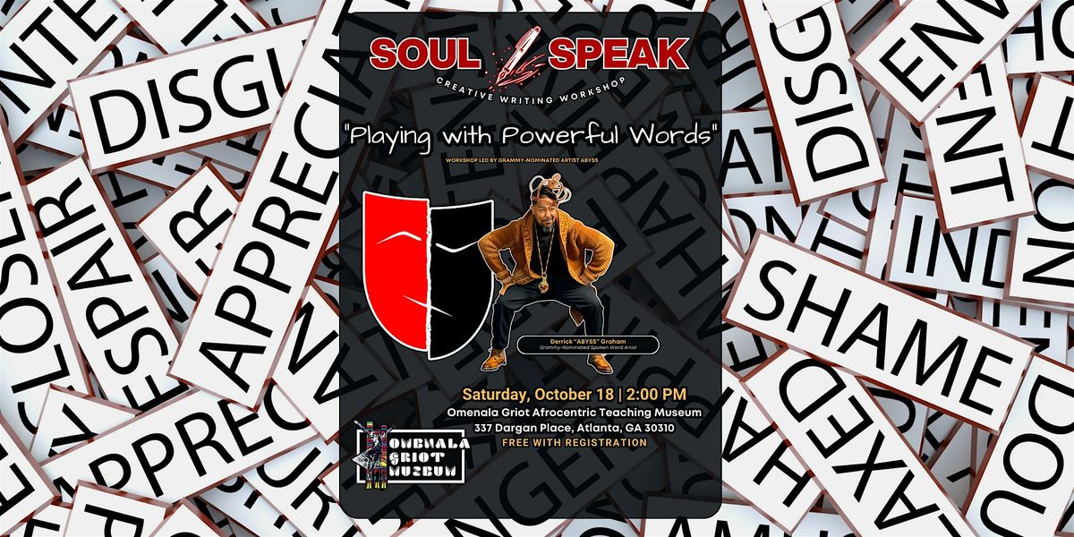 This event is brought to you by the Pamela D. Frankliln Cultural Center for the Performing Arts in collaboration with the Omenala Griot Afrocentric Teaching Museum, South Fulton Arts, and Westmoor Drive Poets Collective.