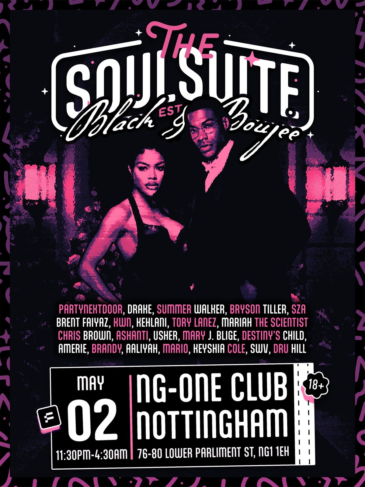 BLACK & BOUJEE đź’ŽBrought to you by Soul SuiteNottingham's biggest New R&B event returns with Black & Boujee, a high class R&B experience. Dress well and Party with us!