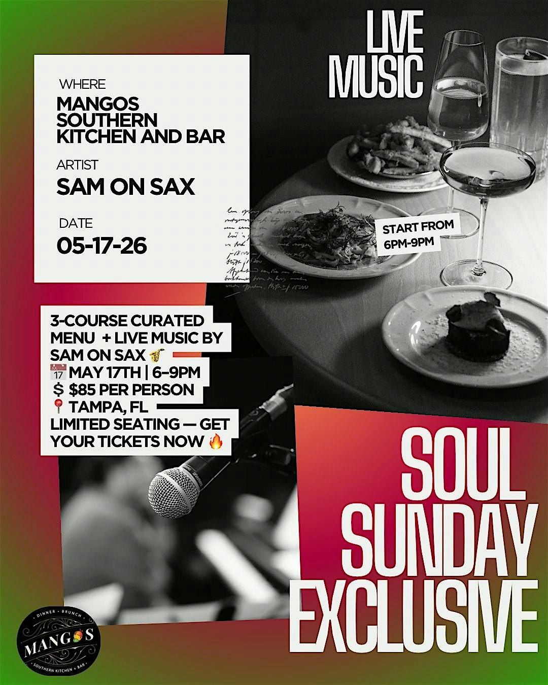 Get ready for a vibe like no other! Soul Sunday Exclusive at Mango’s Southern Kitchen & Bar is bringing the flavor, the energy, and the sounds all together for one unforgettable night. Indulge in a specially curated 3-course meal while enjoying live music that sets the perfect mood for a fun, feel-good evening. Whether you’re coming for the food, the music, or the full experience—this is where you want to be.
