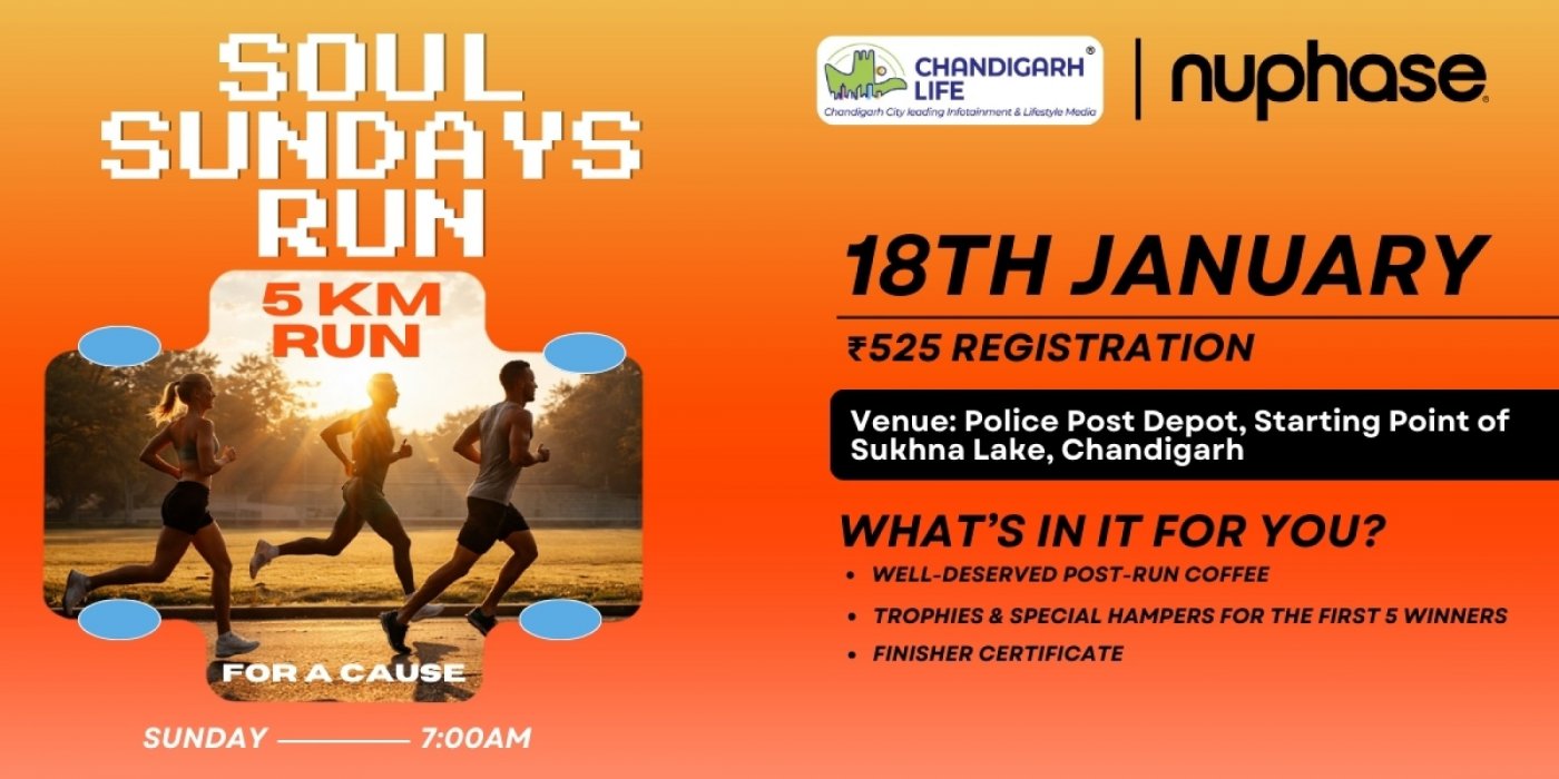 Soul Sundays - nuphase | Date: 11th January 2026 | Venue: Police Post Depot, Starting Point of Sukhna Lake, Chandigarh | Distance: 5 KM Run | Category: Community Run | Organized by: Nuphase | Followed by Coffee & Community Connect