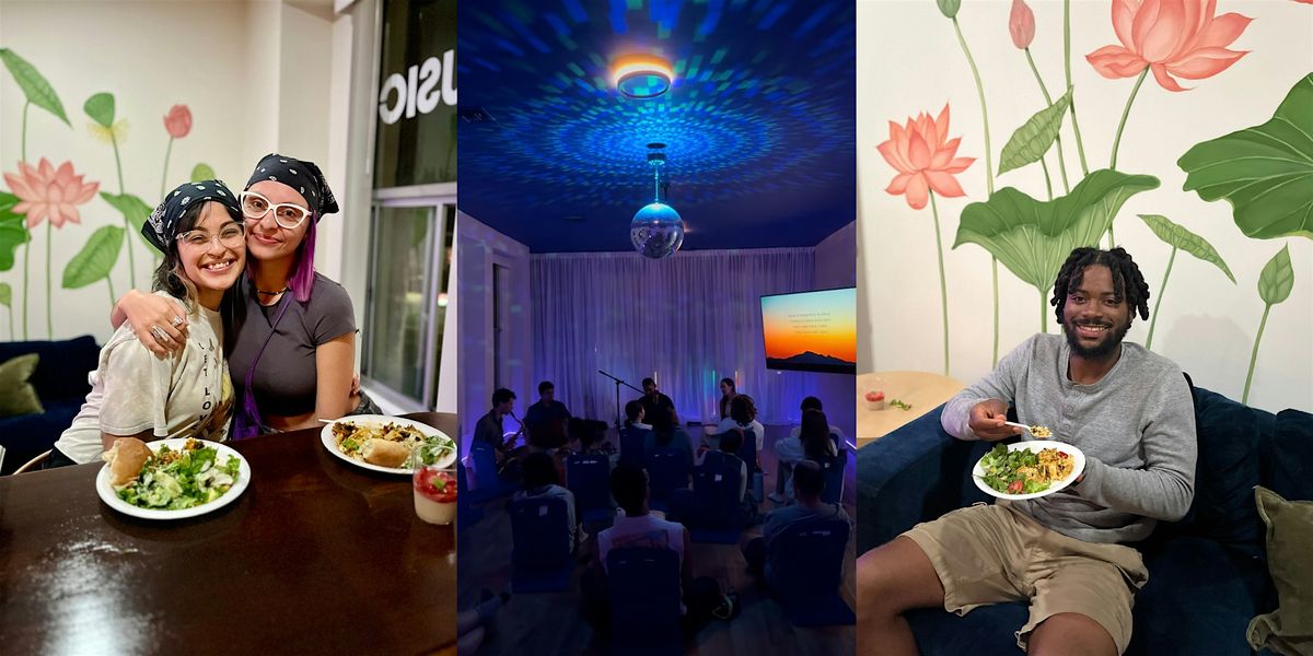 - We end the night with a FIRE vegan dinner, dessert and drinks, cooked with love from home by the owners of Studio Om.