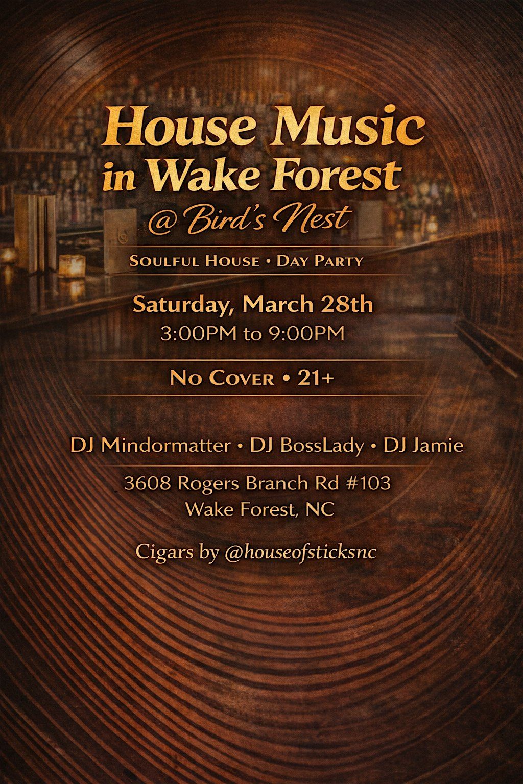 Soulful House Music in Wake Forest @Bird’s Nest