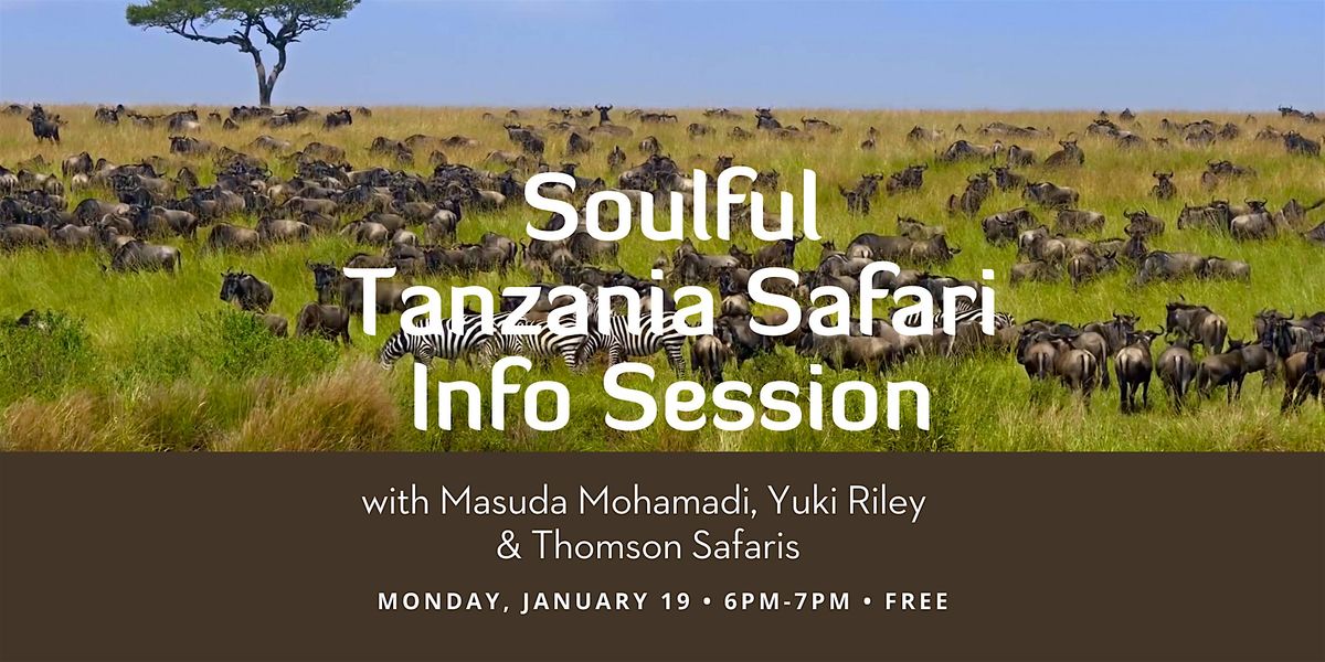 Curious about our upcoming Tanzania Safari Retreat? Join us for a one-hour Zoom info session with Masuda, Yuki, and Andrew Doherty from Thomson Safaris.