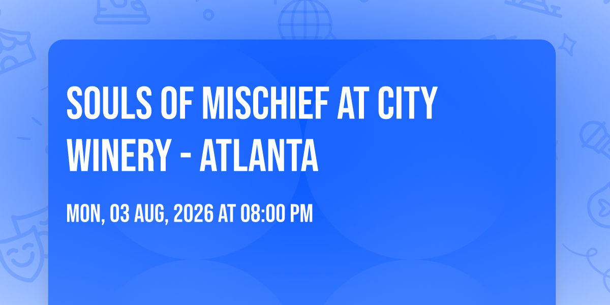 ✨ Discover the extraordinary at Souls of Mischief at City Winery - Atlanta, where magic meets reality in ways you've never imagined! 🏛️ Set in City Winery - Atlanta nestled in bustling Atlanta, GA, this event promises to be a landmark occasion. 📅 Taking place on August 3rd, 2026 at 08:00 PM, it's going to create an atmosphere where every moment becomes a cherished memory. 🌟 Immerse yourself in an experience crafted with attention to every detail, designed to surprise and delight at every turn. They have worked tirelessly to ensure this event exceeds all expectations, bringing together elements of entertainment, innovation, and pure joy. 🎊 Don't miss your chance to be part of this remarkable journey!