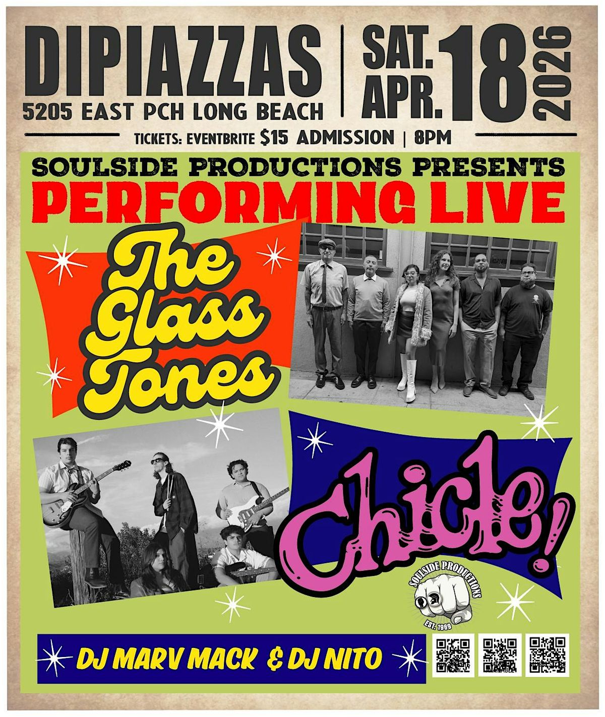 Soulside Productions Presents -The Glass Tones & Chicle Live !!!!!!About this Event