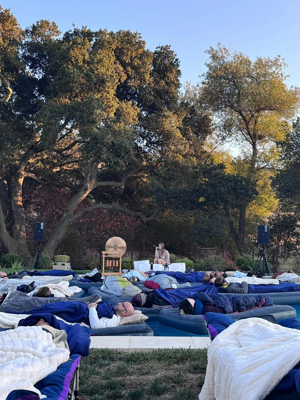 Info: Totally relax on your air mattress knowing our water attendants are in the pool to support the experience. Allow yourself to settle in and enjoy the evening wrapped in a cocoon of sound. We begin with a deep meditative journey that gently guides you inward, followed by a live sound healing with crystal singing bowls, gongs, chimes, and other calming instruments.