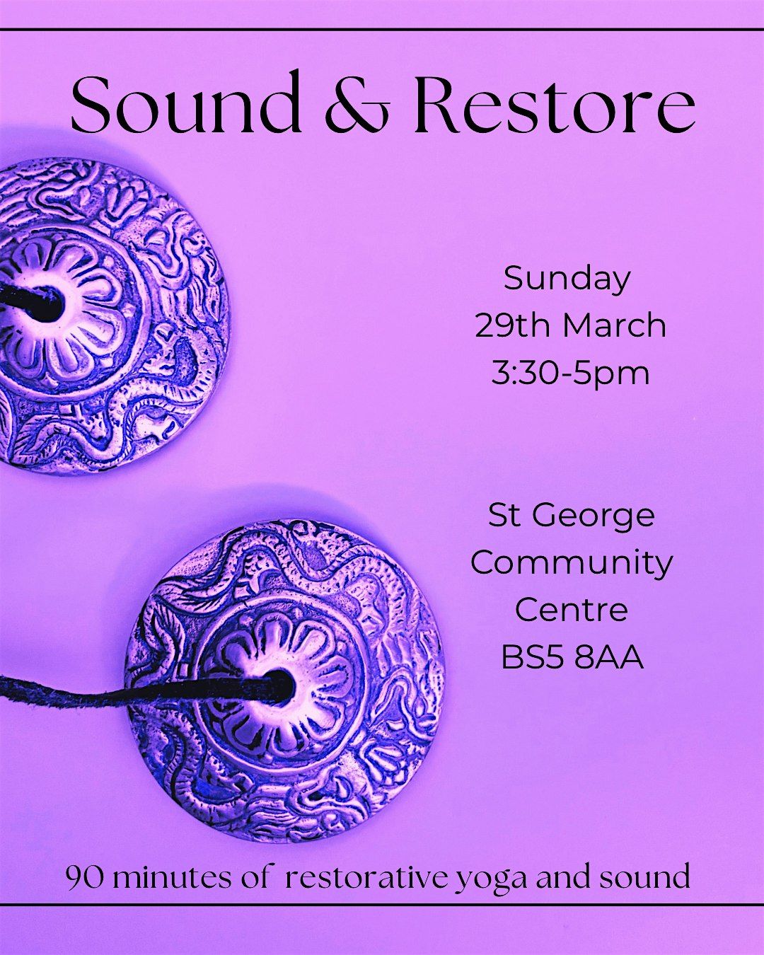 Join Rebecca at St George Community Centre on Sunday 29th March 2026 at 3:30pm for a restorative yoga session followed by a sound bath savasana.