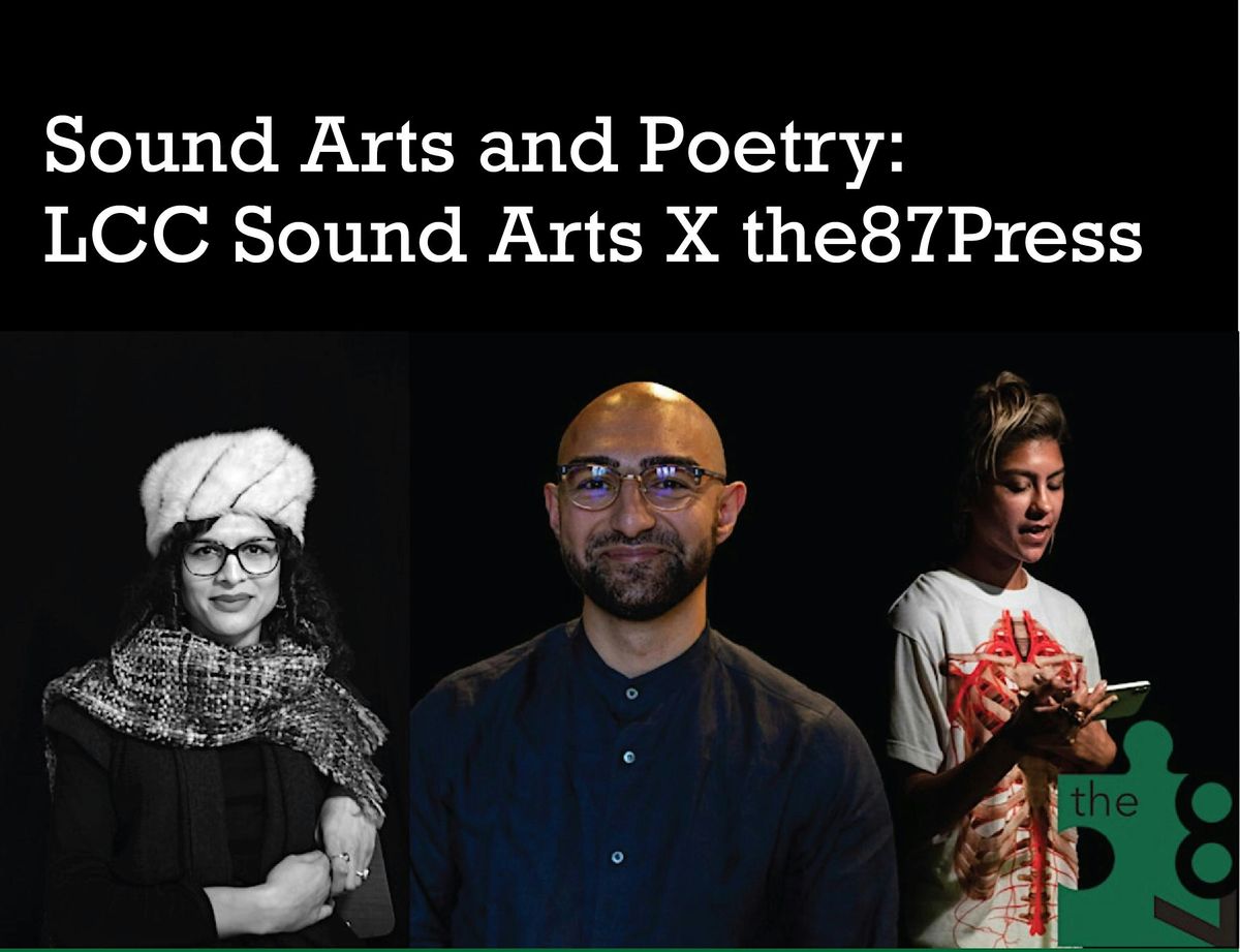 Join us at London College of Communication (Lecture Theatre B) for a poetry performance event with panel discussion and audience Q&A featuring Nisha Ramayya and Nat Raha. Raha's and Ramayya's practices blur the edges between sound-art and poetics, and recent publications have been accompanied by a wide range of performances. Following readings, Raha and Ramayya will be joined in dialogue by Azad Ashim Sharma for a panel on poetry and sound, introduced by Annie Goh, Course Leader of BA (Hons) Sound Arts at LCC. This event follows on from the first poetry performance event with the87press in Autumn 2025.