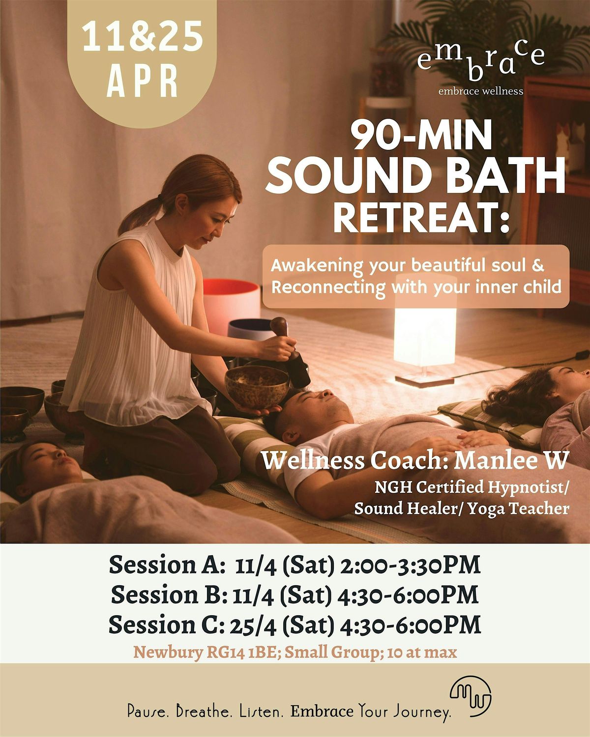 Before tending to the outside world, take a moment to nurture yourself. Embarking on the journey of caring for your inner child is liberating. With Manleeโs guidance, youโll be cultivating your own healing sanctuary for the soul. Immerse yourself into the restorative and powerful sound bath with Tibetan full moon bowls and crystal singing bowls, and allow the soothing vibrations to envelop you, freeing and empowering your essence as you embrace the radiant energy of your inner child.