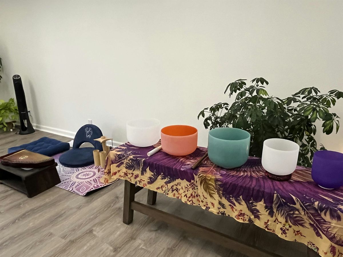Join us for a relaxing and immersive Sound Bath Experience! Feel the soothing vibrations wash over you as you unwind and recharge. This is an in-person event where you'll get to soak in calming sounds, perfect for stress relief and deep relaxation. We supply the mats, you bring yourself, a blanket, an eye pillow, and anything to help support you in this space and let the waves of sound take you on a peaceful journey.