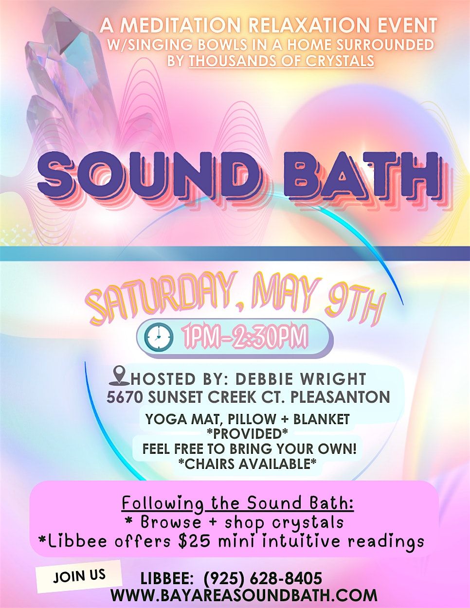 Join us for a small-group sound bath gathering in a special crystal-filled home in Pleasanton.