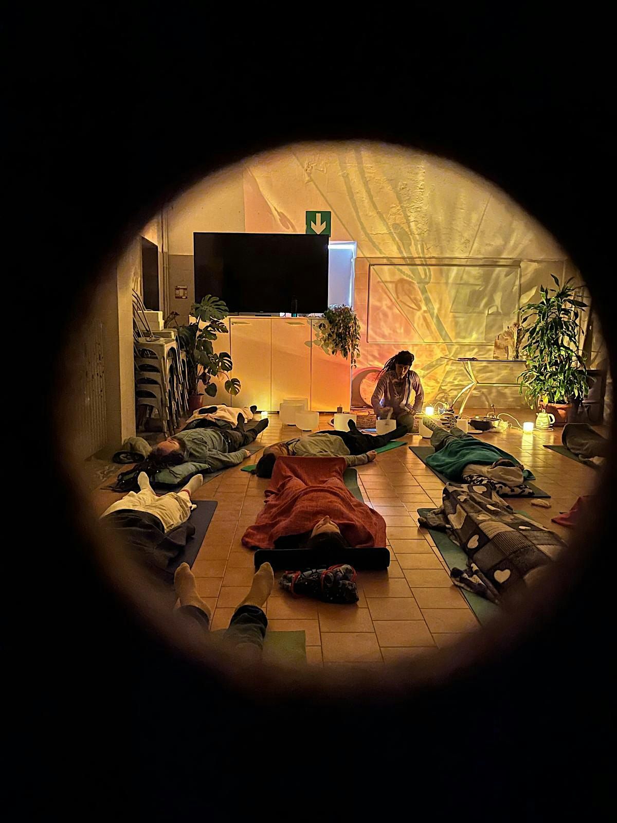 Bagno di suono con campane di cristallo e strumenti nativi