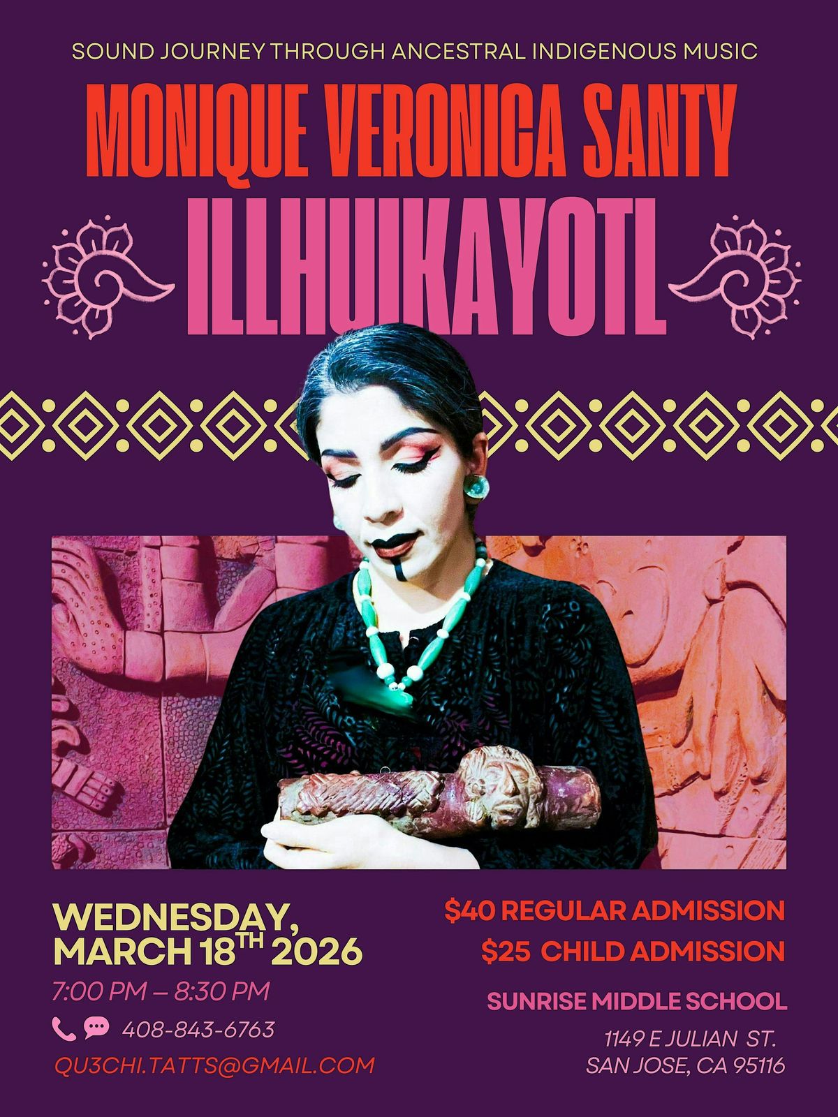 Join us for an amazing in-person experience created by Monique Veronica Santy Illhuikayotl and dive deep into the world of Indigenous sounds. Feel the rhythms, stories, and soul of ancestral music come alive around you. It’s not just a concert; it’s a journey through time and tradition. Perfect for anyone curious about culture, music, or good vibes. Don’t miss out on this immerssive experience!