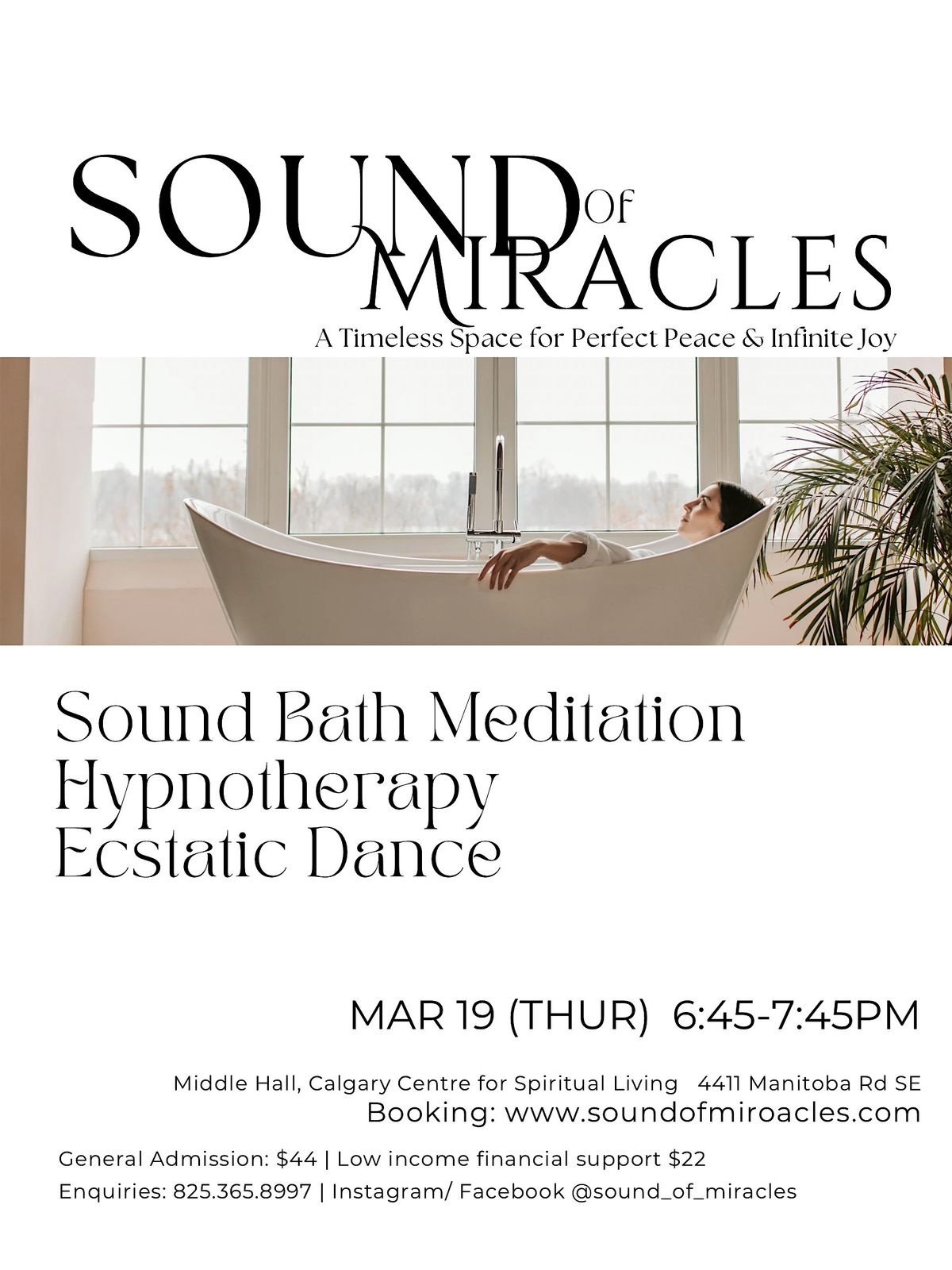 Come join us for an evening of relaxation and rejuvenation at the Middle Hall of the Calgary Centre for Spiritual Living. Experience the transformative power of Sound Healing & Hypnotherapy in a serene and sacred environment.