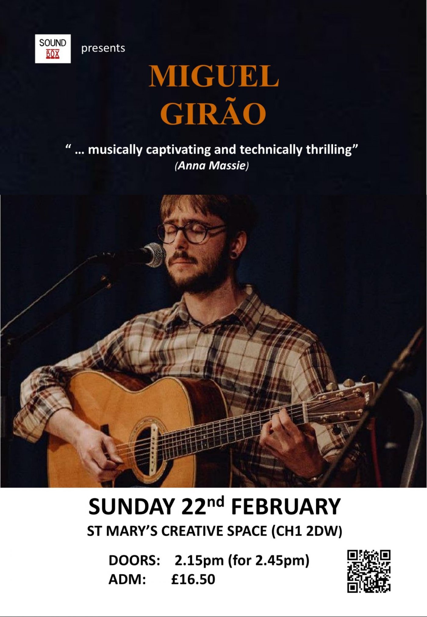 SoundBox is delighted to introduce the very talented guitarist Miguel Girão in a Sunday afternoon concert, which opens with an 'In conversation feature.