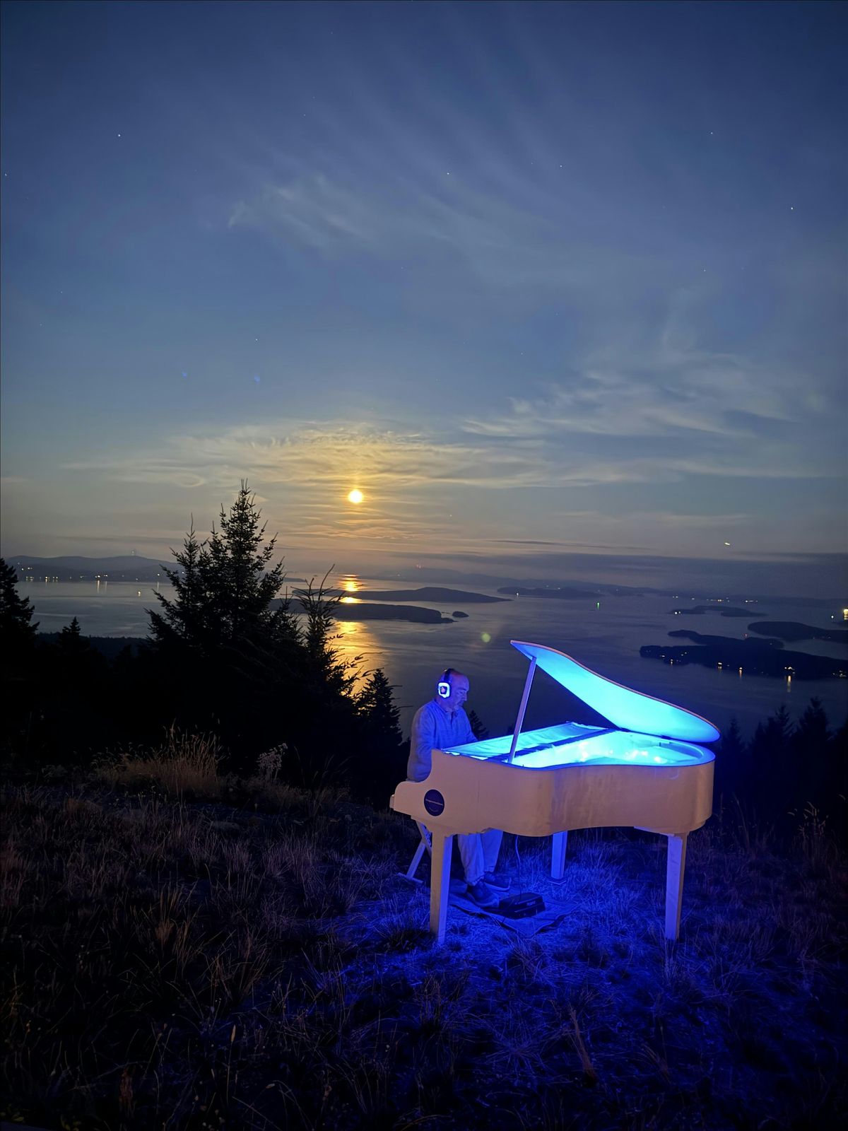 Live, original piano music on a white baby grand, played by pianist and composer Brent Alan Huffman, and delivered through specialized headphones that carry the sound inward. Each listener follows a private journey, while sharing a space of quiet presence and connection.