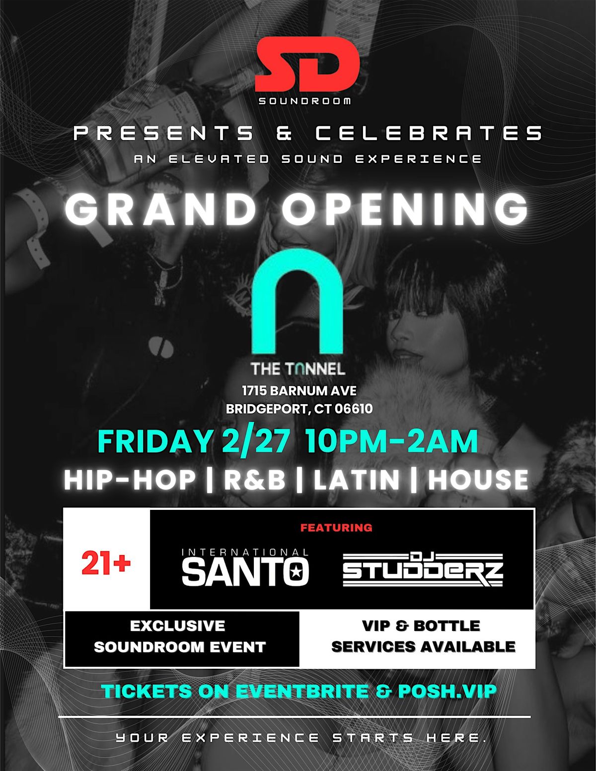 Two grand openings. Soundroom launches at The Tunnel’s debut night. Elevated sound, curated DJs, VIP & bottle service. 21+.