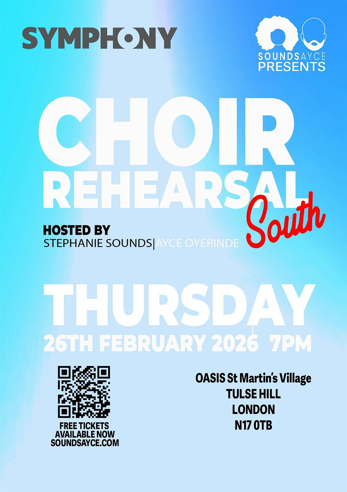 Come join us for a fun and uplifting choir rehearsal SOUTH HUB at OASIS St Martins Village! Whether you're a seasoned singer or just love to belt out tunes in the shower, this event is for you. Choir Rehearsal is a quarterly event aimed at intermediate and advanced level singers (although all are more than welcome) where we'll be learning new songs, working on harmony, blend and spreading good vibes through gospel music. The event is delivered by Stephanie Sounds and Ayce Oyerinde (Sounds Ayce) who have a comibined over 40 years experience singing and teaching gospel music. Don't miss out on this opportunity to be in a professional choir environment with no strings attached. See you there!