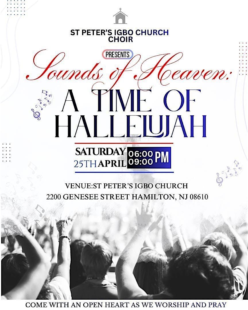 Join us for an amazing evening at St Peter's Igbo Anglican Church as we lift our voices in praise and worship! This is your chance to experience the Sounds of Heaven and share a powerful time of hallelujah with friends and family. Don't miss out on this special night filled with uplifting music, great vibes, and healing.
